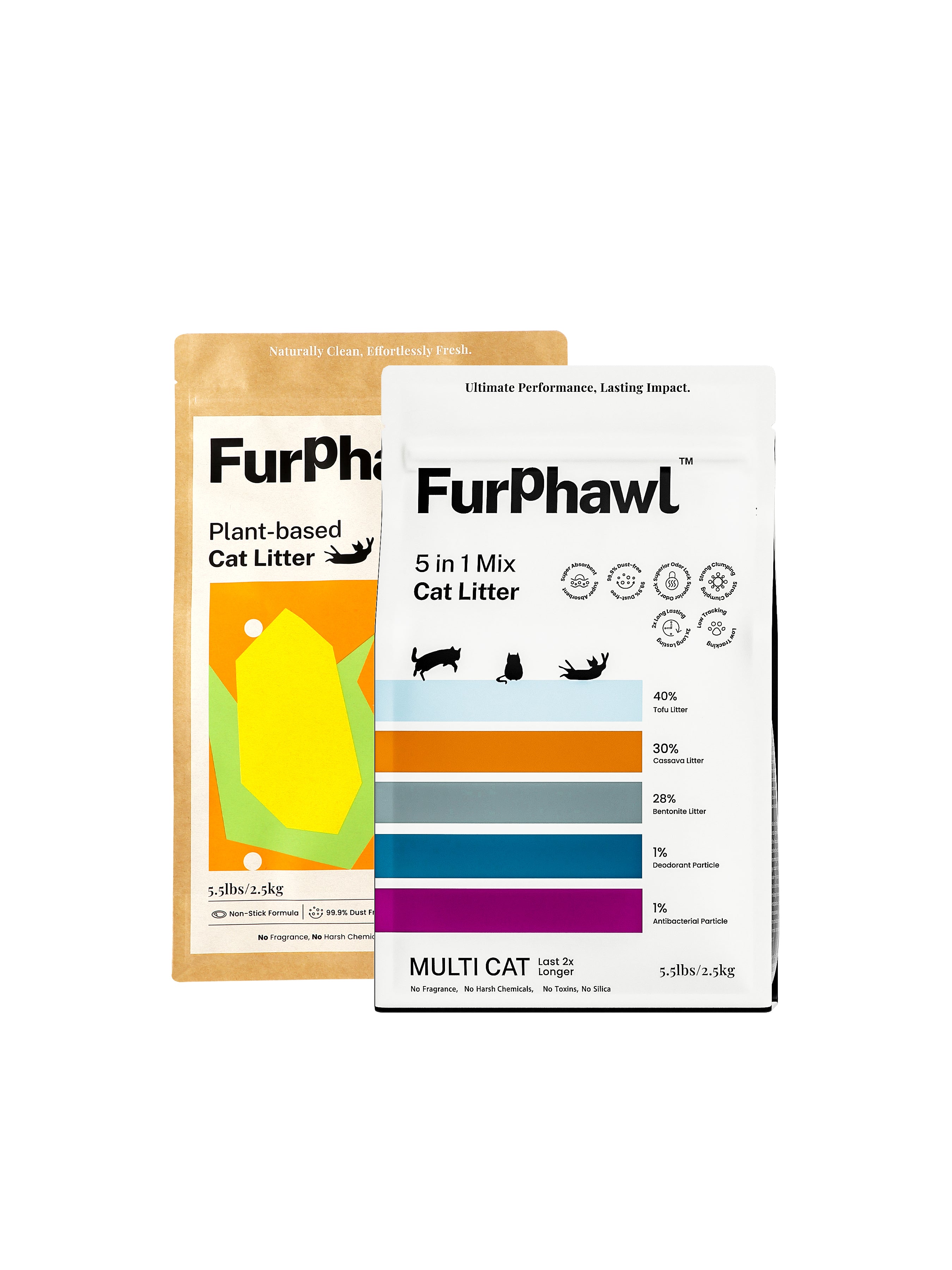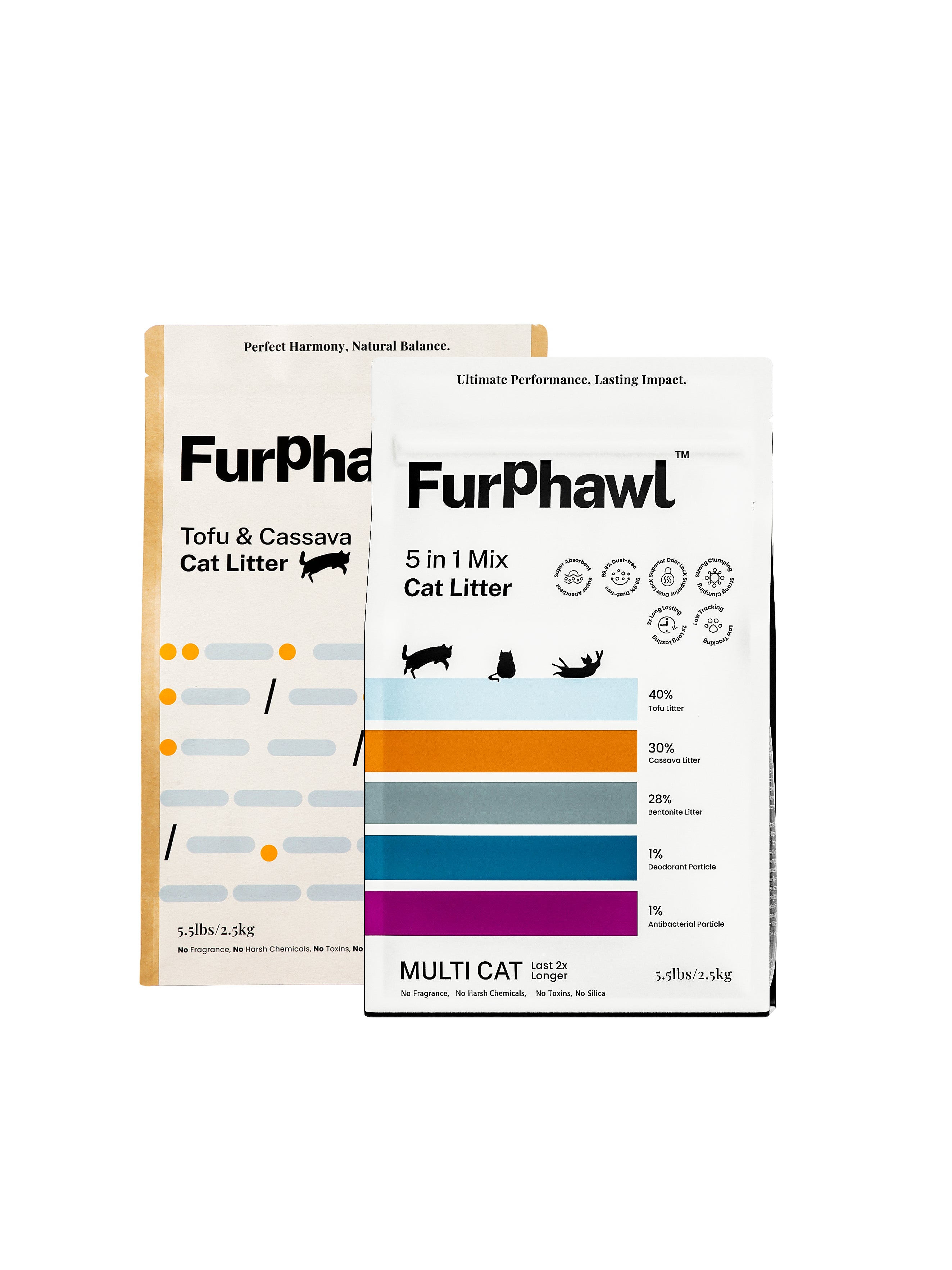 ✔ 1 bag of our 5-in-1 Mix Litter – a smart blend of cassava, tofu, bentonite, deodorizing particles, and antibacterial agents. This mix offers the firm clumping and odor control of classic litter, with the low dust and natural feel of plant-based ingredients.